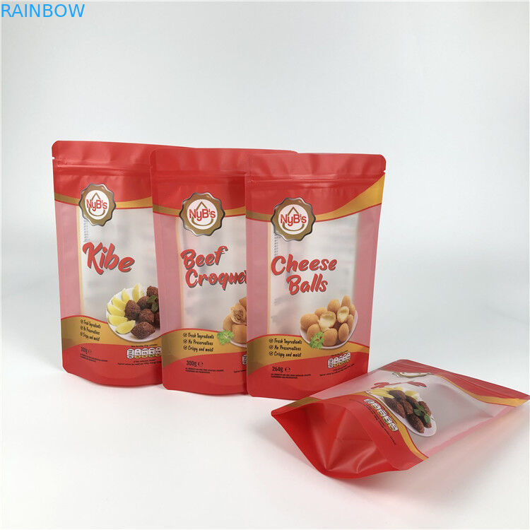 ถุงพิมพ์ดิจิตอลปริมาณมินิคุกกี้เนื้อกระตุกบรรจุภัณฑ์พลาสติกยืนขึ้นถุงซิปพร้อมหน้าต่างที่ชัดเจน