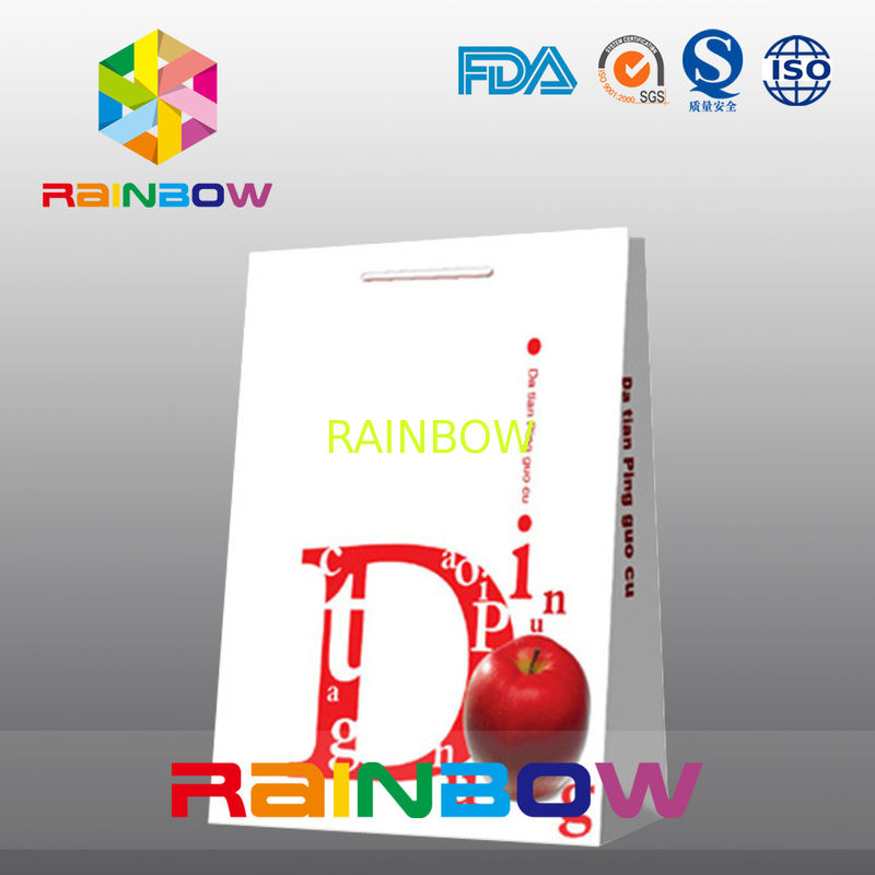 สินค้า | ถุงกระดาษที่กำหนดเองสีขาวด้านล่างแบน / กระดาษโลโก้ถุงช้อปปิ้ง |